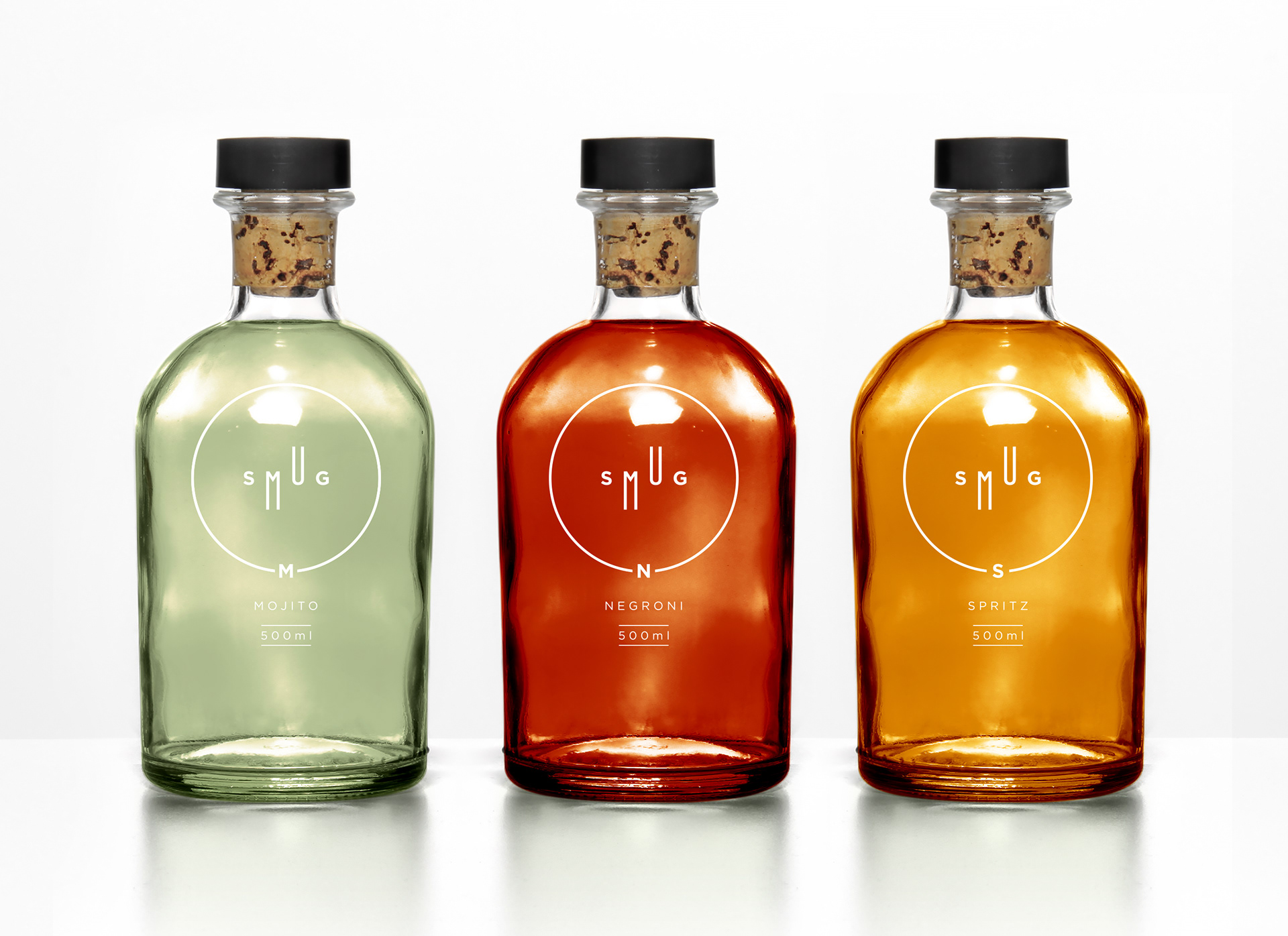 Branding study for company focused on selling ready-made drinks; smug. The partnership involved naming, branding, editorial design and packaging for the bottles.