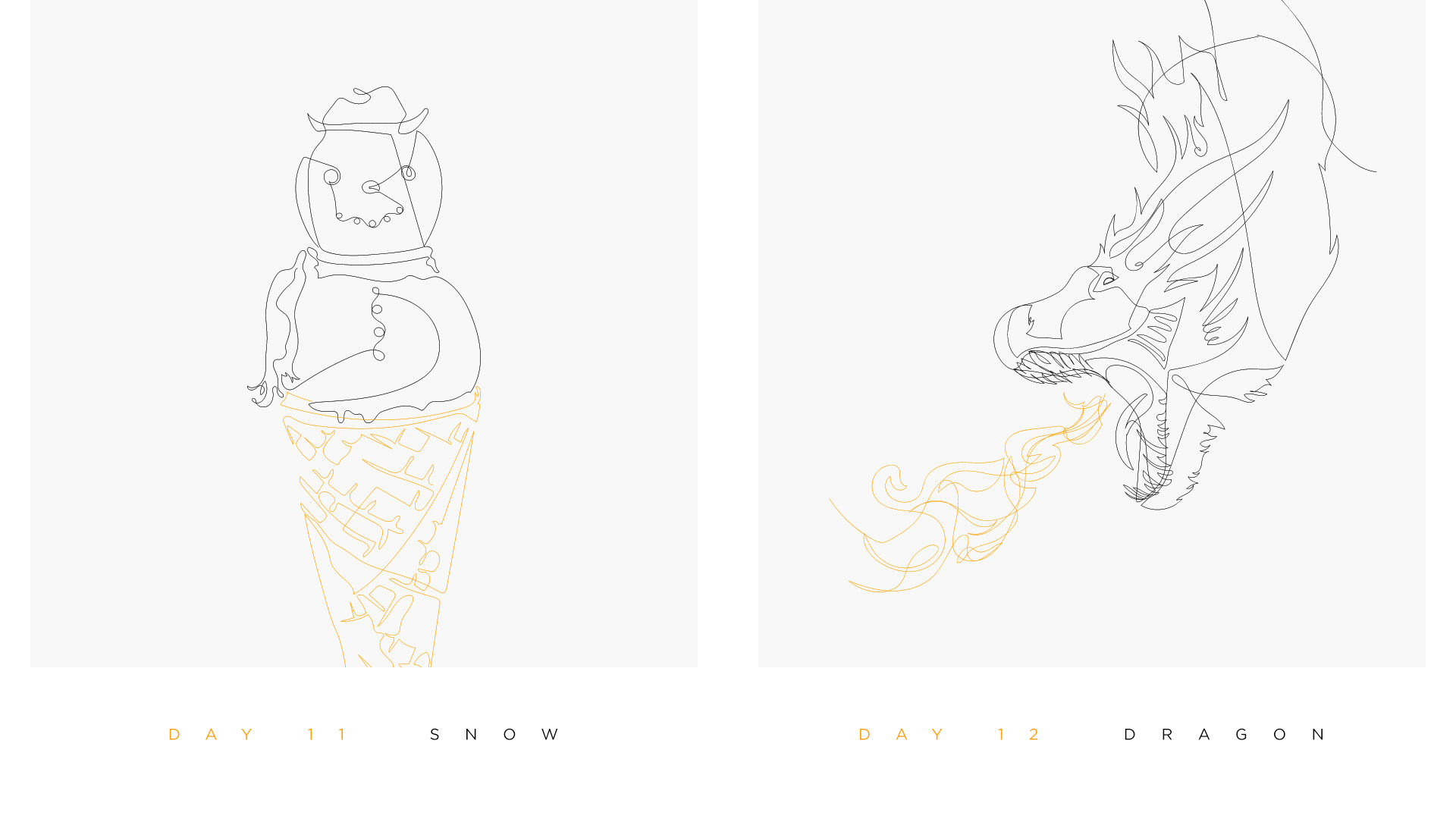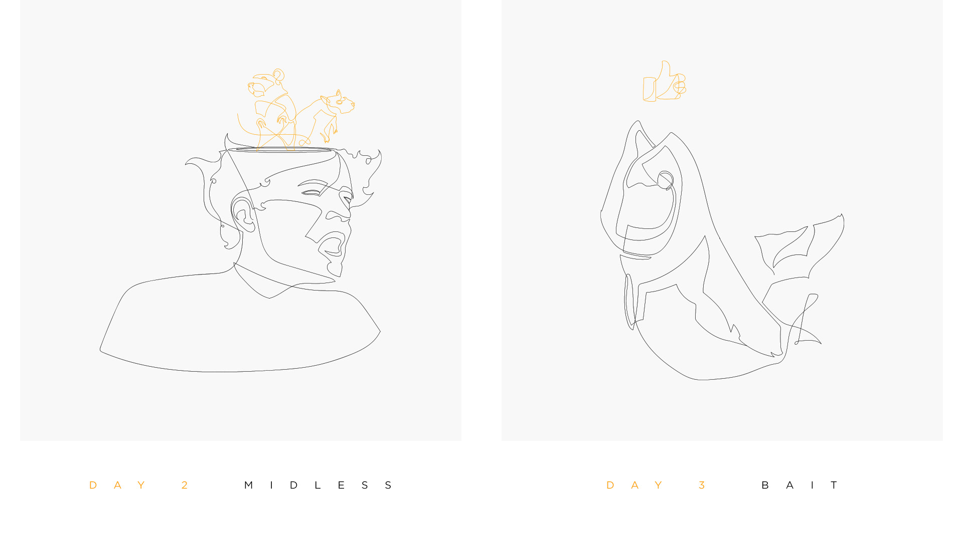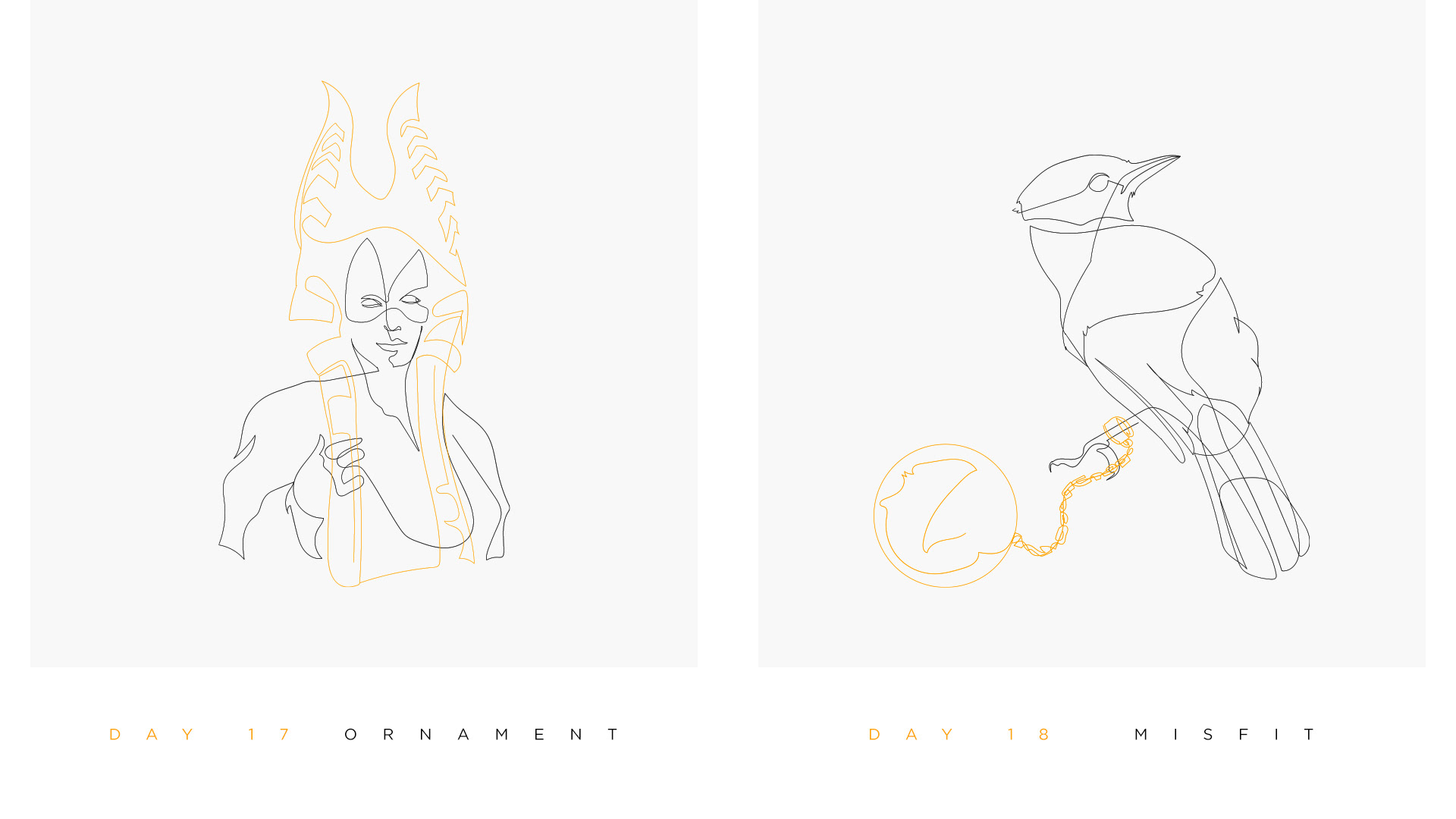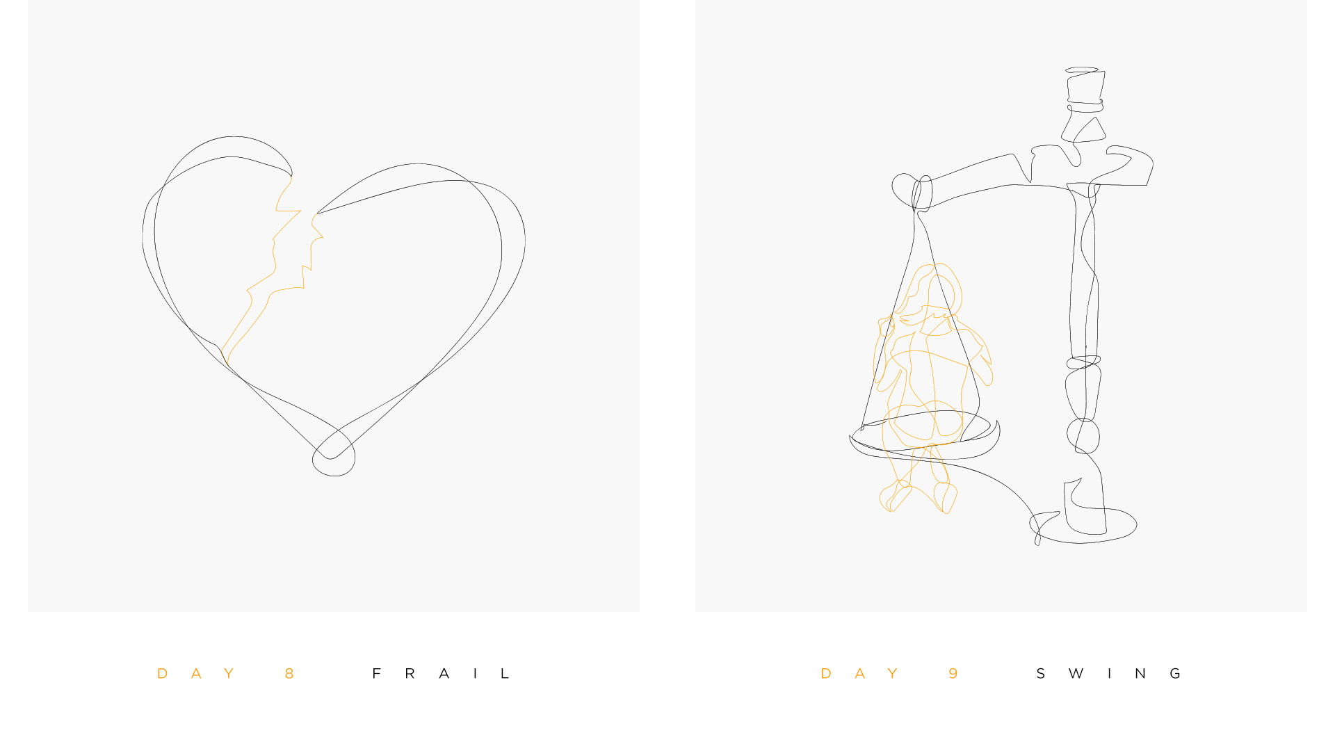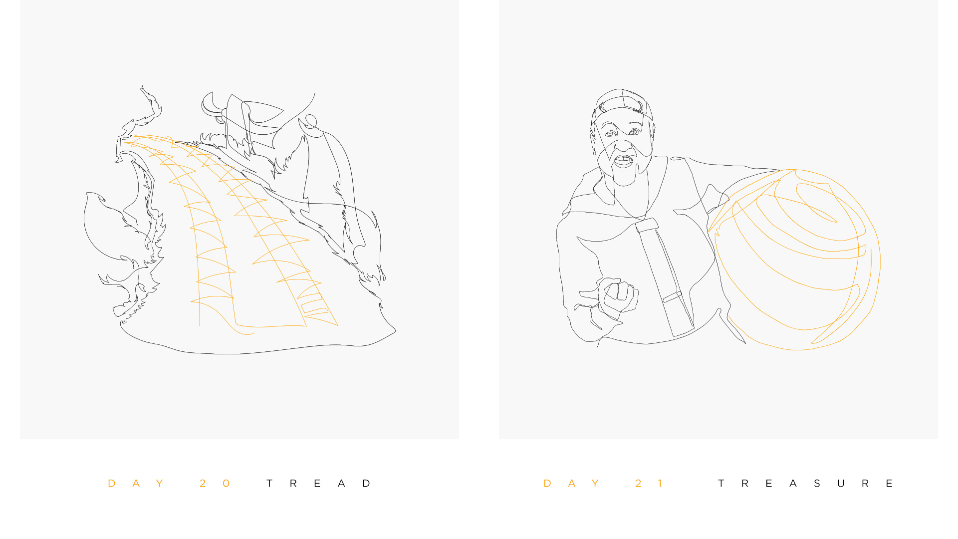 For Inktober 2019 I challenged myself to create illustrations from just two lines, one black and one yellow, superimposed on a white background